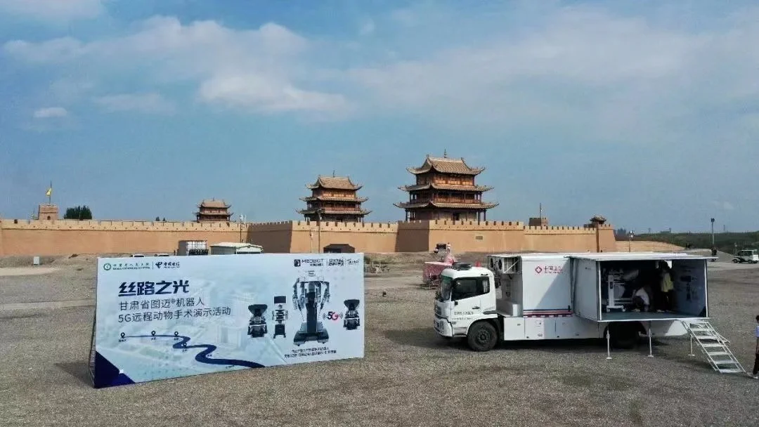 据称,在去年8月,携搭载图迈®手术机器人的中国卫生医疗救援车载平台,甘肃省人民医院手术机器人团队还完成了一次历时15天的丝路之行。期间,在“天下第一雄关”嘉峪关城楼外,利用先进的无人机组网技术,将无人机技术与5G技术结合确保通讯顺利,成功完成国内首例脱离医院环境5G远程机器人动物手术技能演示,为未来野外外科机器人网络协同远程手术(复杂手术环境)奠定技术基础。