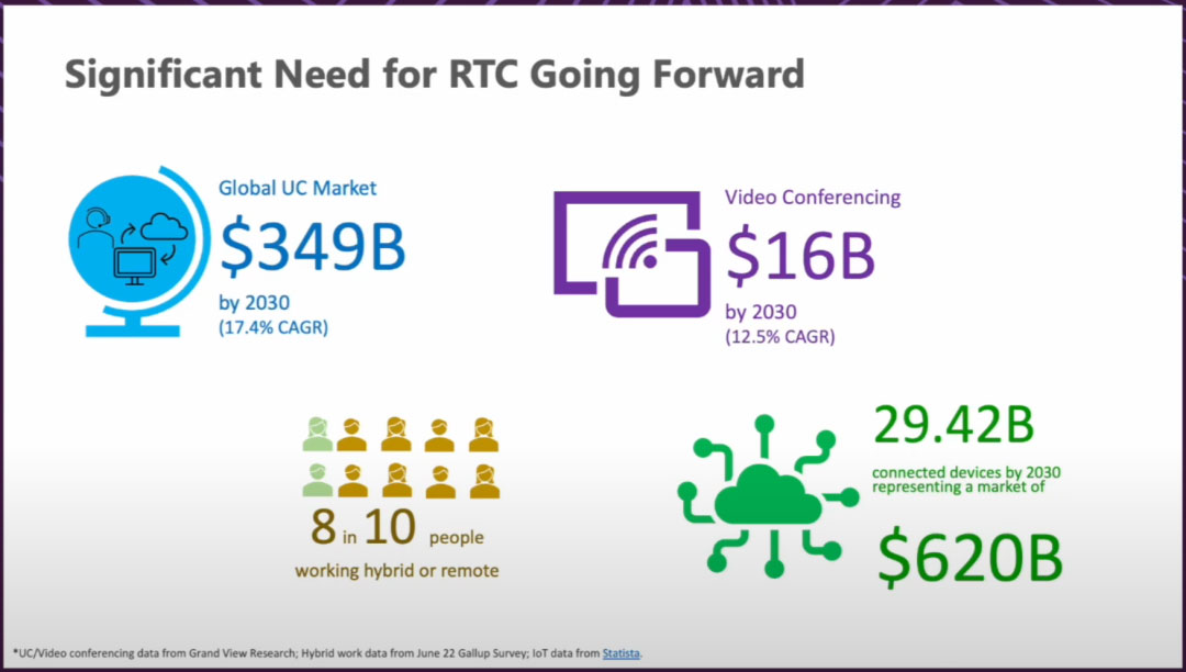 当我们考虑这些统计数据时,这些数据主要关注企业世界和信息工作者。但是当我们关注连接设备领域时,这个机会会更加巨大。如果我们考虑到到2030年,市场上将有约300亿个连接设备,这将是一个价值6.2万亿美元的机会。我确实看到了实时通讯注入到这些不同设备中,可以真正改善用户体验,开辟新的场景,共同解决问题。