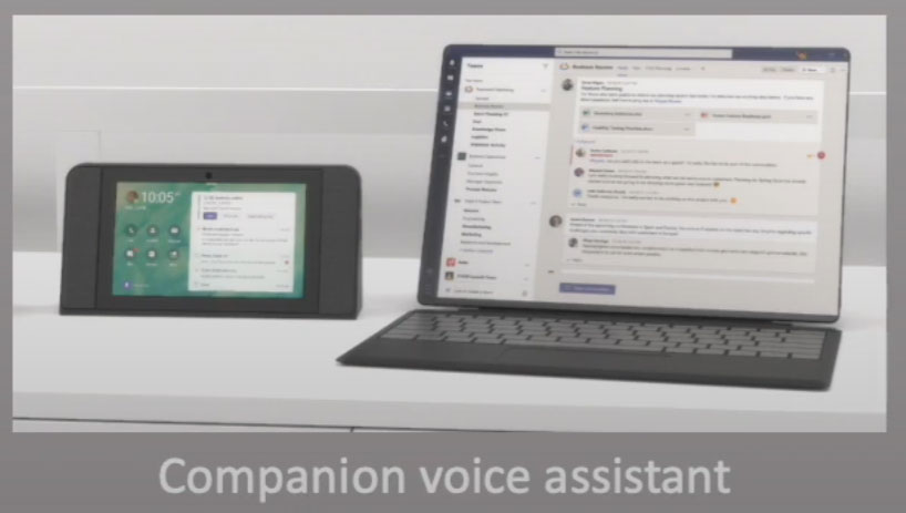 另一个使用案例是陪伴设备。您可能会使用笔记本电脑或台式机,但同时,您可能希望在旁边有一些辅助设备帮助您,无论是语音助手,还是另一个设备上有您的日历,或者运行一些其他应用程序。在这种情况下,我们认为陪伴设备可能会非常有帮助,您可以使用该设备进行通话和会议,而将台式设备用于其他应用程序,无论是创建幻灯片、设计还是其他程序。