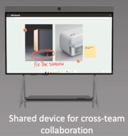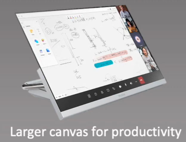 还有一种情况是团队展示设备。在与他人协作的白板或某种协作工具上,您可能需要一个更大的画布,也许您想要一个24英寸或27英寸的画布,可以写字并更无缝地协作,同时在背景中进行实时通讯。上图是一个团队展示设备,我们在这个更大的外形尺寸上提供了这种功能,它仍然可以放在您的桌子上。我自己的桌子上就有这个设备,而且我经常使用它。