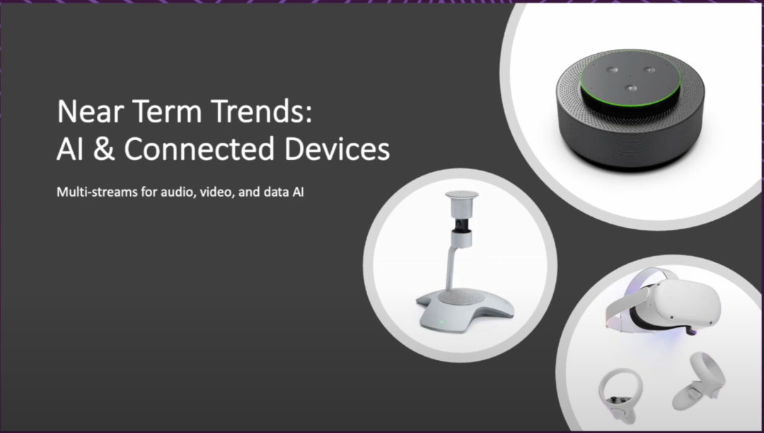 我认为最重要的是:基于AI技术,我们需要扩展我们对实时通讯的理解。传统上,实时通讯主要关注单一的音频或视频流,而现在,当我们考虑到人工智能以及连接设备的能力和案例时,我们需要开始考虑多流的音频、视频和数据,以便远程用户能够获得更好的体验。