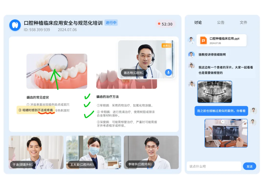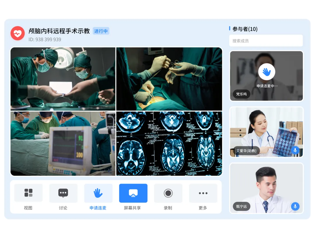 不论是科普医学知识,还是医疗行业者的专业培训、手术示教,采用远程直播培训的方式能够打破空间限制,同时也保留了课堂的互动性,大大节省了讲师和学员的成本。即构互联网医疗解决方案能够快速集成直播场景,提供从采集到渲染的直播全链路优化能力。