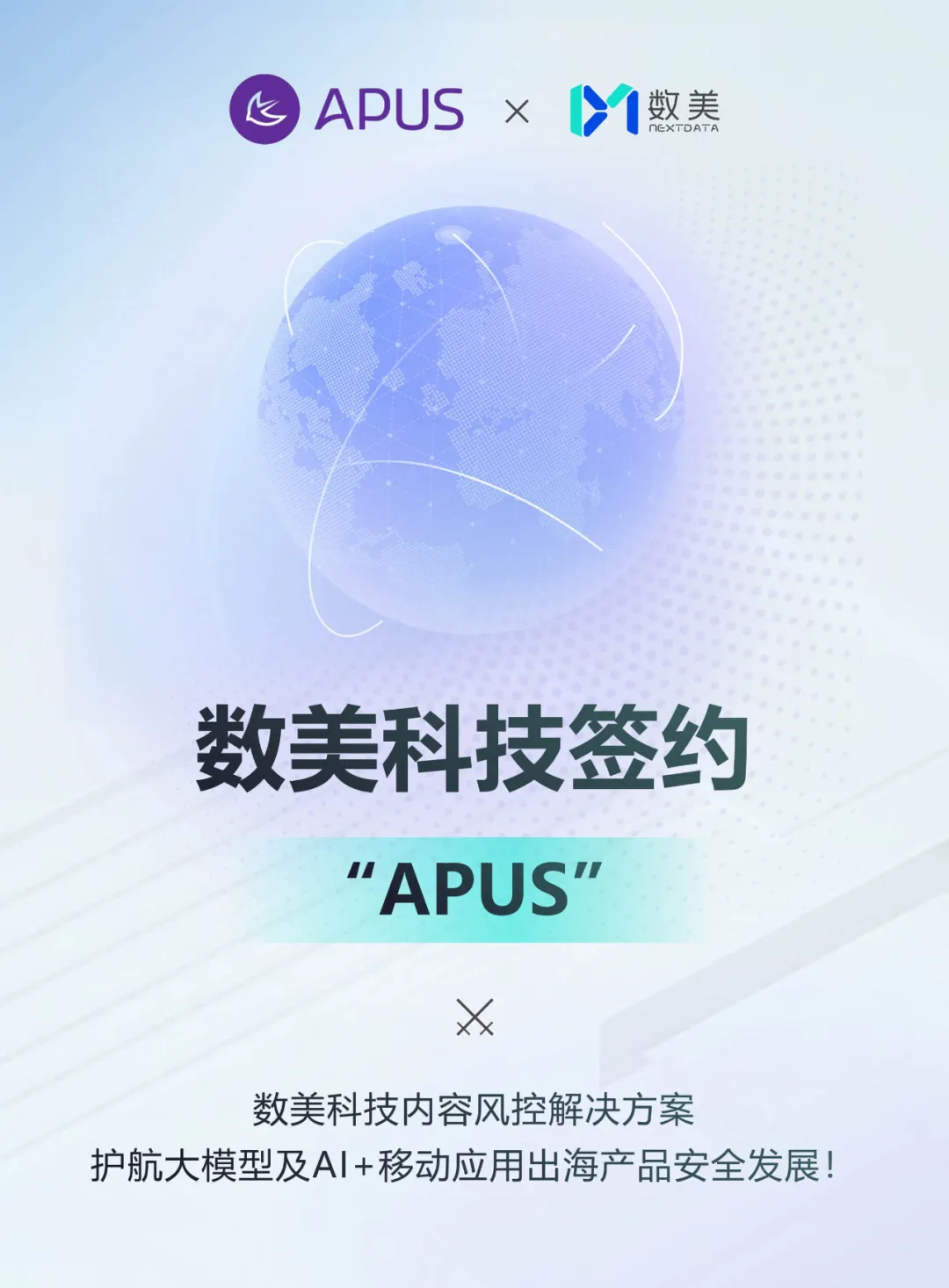 近日,数美科技与APUS(麒麟合盛网络技术股份有限公司)达成合作,双方携手强化APUS大模型及AI+移动应用出海产品的内容风险防御能力,共同打造优质的内容生态,致力于为全球企业、开发者及普通用户提供更优质的AI服务。