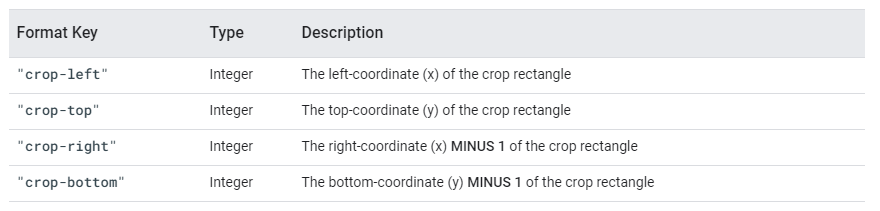 4 width = format.getInteger("crop-right") + 1 - format.getInteger("crop-left");