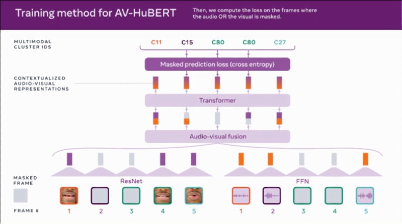 AV-HuBERT 也是多模态的,因为它通过一系列的音频和唇部动作提示来学习感知语言。通过结合说话过程中嘴唇和牙齿的运动等线索以及听觉信息,AV-HuBERT 可以捕捉这两种数据类型之间的细微关联。