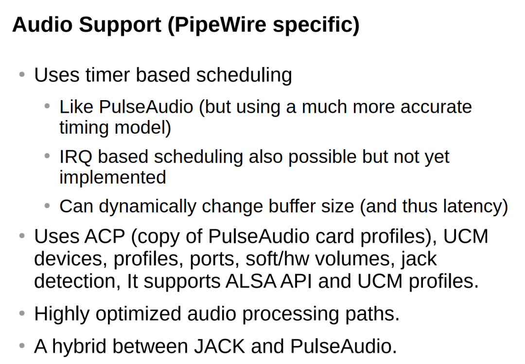 以上支持使得 PipeWire 在保证性能的情况下减少延迟。