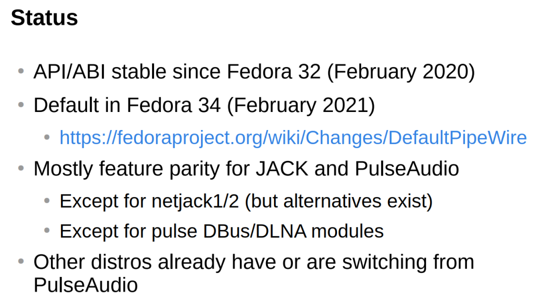 可以看到 PipeWire 运用广泛,并已经逐渐替代了 JACK 和 PulseAudio。