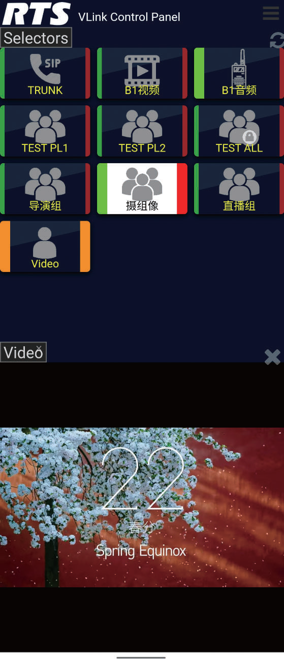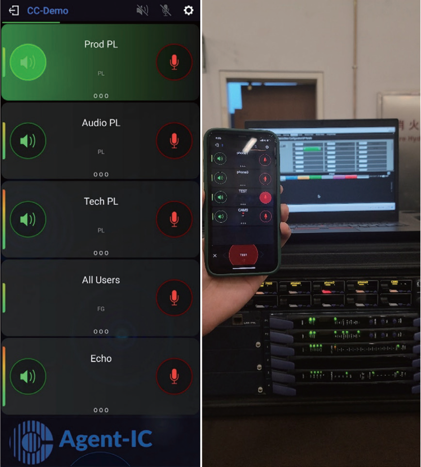 新媒体和远程制作是当下的热门,IP 通话系统 虽然可以实现公里级的通话传输,但是无法满足新 媒体和远程制作的灵活性需求,基于服务器和手机 客户端的通话系统可以很好地适应这两种制作形式。 Clear-Com 公司的Agent-IC 和RTS 公司的VLink 是目前常见的远程通话系统。它们都基于自有IP 设 备或PC 设备运行服务器端软件,并提供主流手机 系统的App 客户端软件,通过购买授权或硬件设备 的方式增加对手机客户端的支持数量。系统可以在 局域网中运行,也可通过公网运行(需要公网IP 地 址)。在系统设置和使用逻辑上,以LQ 为服务器端 的Agent-IC 基于Partyline 系统逻辑进行设置、使用, 以通话矩阵IPA 板卡为服务器端的Agent-IC,以及 以PC 设备为服务器端的VLink 均基于通话矩阵系统 逻辑进行设置、使用。手机客户端的操作类似于传 统通话面板,有“听”/“说”按键,可以实现简单 的通话功能。目前远程通话系统功能还相对简单, 稳定性受服务器端硬件及网络环境影响较大,简单 的节目制作形态尚可满足需求,但无法胜任大型转 播的要求。