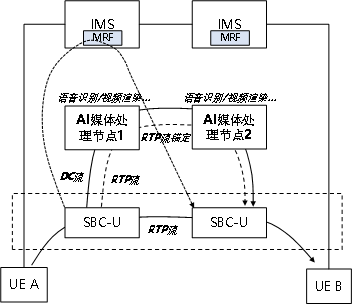 VoNR+中的媒体计算处理业务包括实时话音翻译及AR远程标注等对音视频进行处理的业务,网络侧算力资源需要对媒体进行分布式处理,如图3所示,通过将媒体算力节点与IMS数据面核心网元SBC(Session Border Controller)进行融合,实现媒体面的算网一体。这需要IMS网络实现算力资源调度及实时处理,因此基于IMS的媒体智能AI处理将是未来VoNR+业务体验保障的重要技术,可提供音视频差异化服务,比如通过人脸识别、手势识别以及实时翻译等AI处理能力设计新的业务产品。