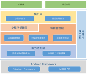 VoNR+终端提供了一个全新应用框架,通过原生通话应用和新通话小程序结合的方式,为企业、开发者构建了一个全新的5G新通话生态。如图4所示,运营商搭建一个开放的应用平台,企业和开发者则以提供小程序的方式,共建合作共赢的环境。基于Web技术及JavaScript脚本可以实现应用及网络自定义的灵活界面显示,减少对端侧繁琐的定制诉求;同时,终端应支持将IMS Data Channel向应用层开放调用接口,使能IMS Data Channel成为新的行业应用入口,丰富基于运营商音视频的行业应用生态。