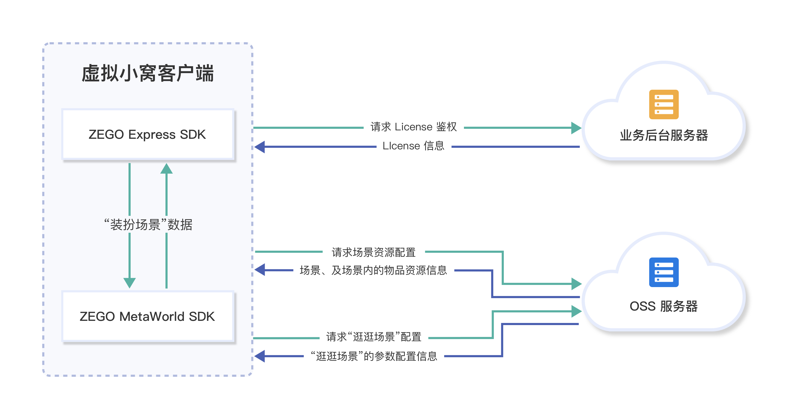 - 首先初始化 MetaWorld SDK、Express SDK。 初始化时,需要向业务后台请求鉴权 License,详情请参考 设置 License 鉴权。