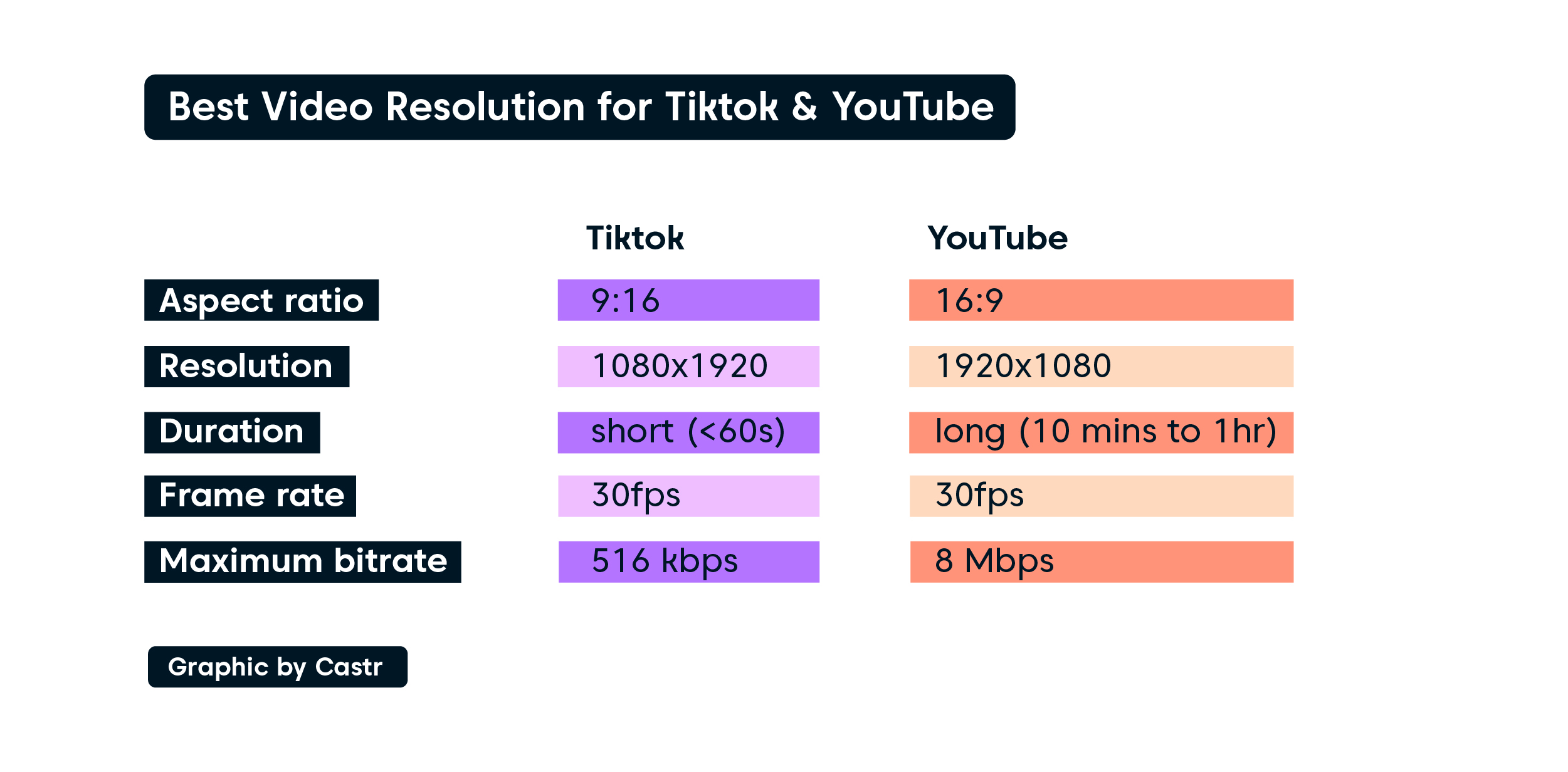 由于 TikTok 剪辑旨在匹配应用程序的全屏观看格式,因此最佳纵横比为 9:16。建议使用 1080p 的视频分辨率以获得最佳观看体验。