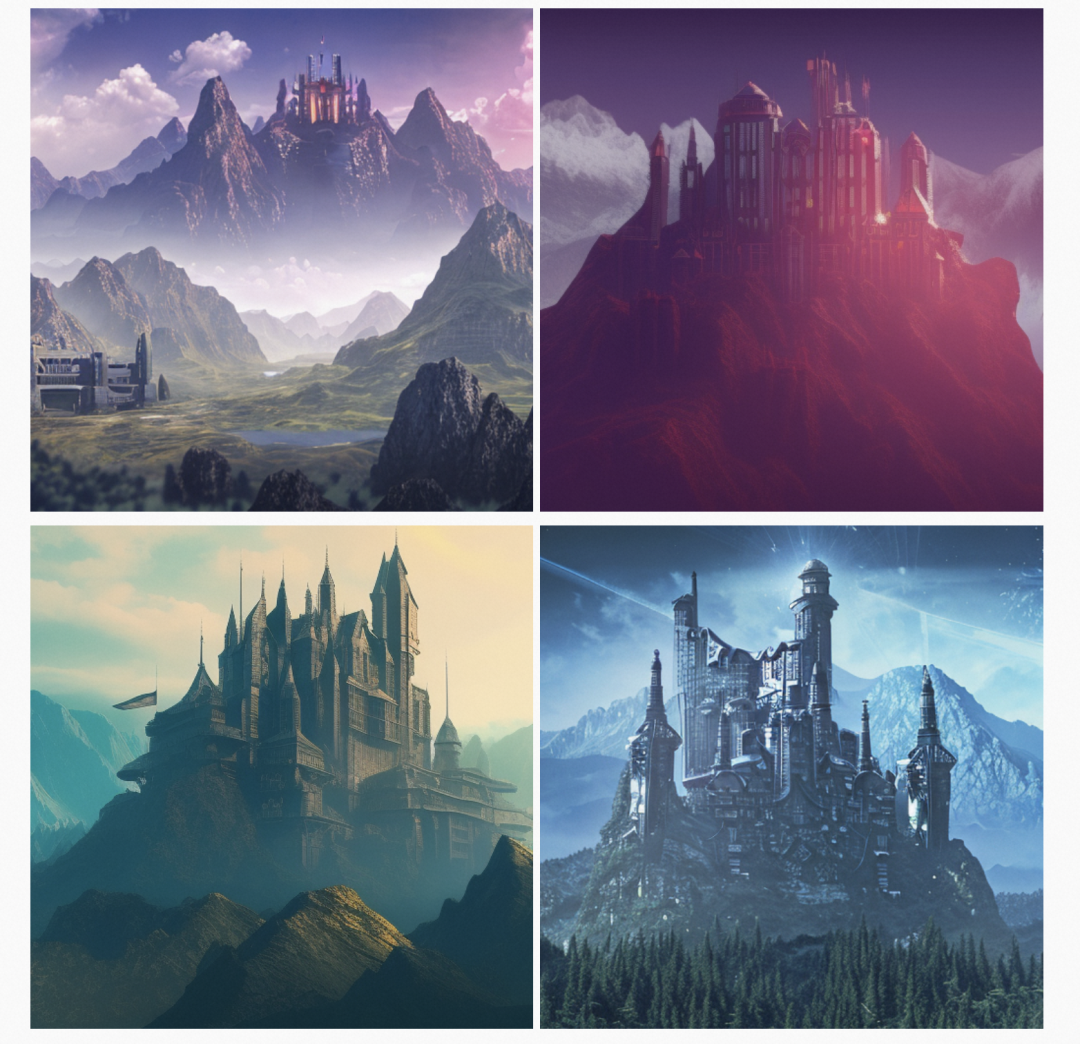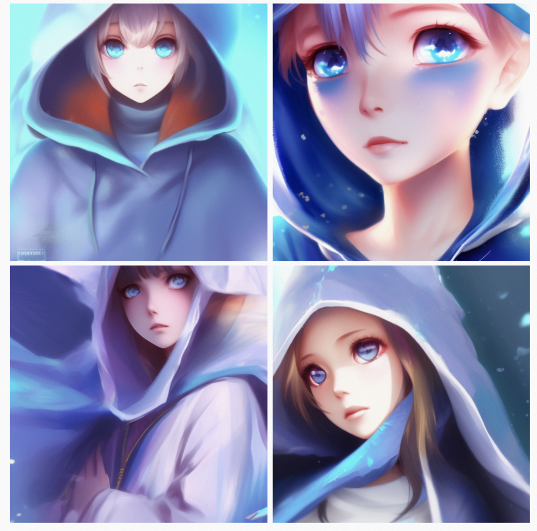 在当前阶段,借助于 CLIP + Diffusion 的底座大规模预训练的成果,在风格、主题、艺术家、光线、物体等 400 维度的学习之后,根据提示信息已经可以绘画出相当具有意境的画作。根据提示词、随机种子、采样器的不同,往往会随机出现多幅作品:此时良品率大概在 15% 左右,是不是有种开盲盒的感觉呢?