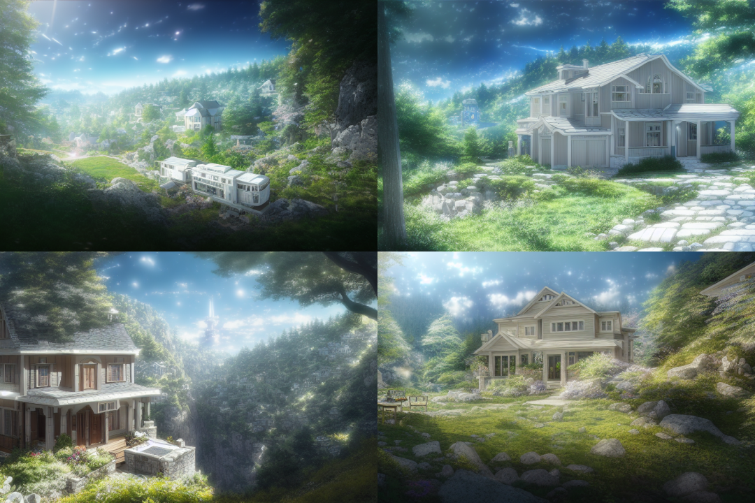 以未加训练的 SD-2-1-base 为基础模型,随机输入文字制作几张图片, 仅作示例。