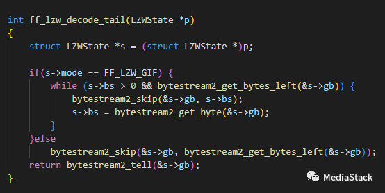 “gif_decode_frame” 函数是 FFmpeg 中 GIF 解码器的一部分。FFmpeg 是一个编解码器和相关工具的库,允许开发人员编码和解码各种多媒体格式。该函数负责解码 GIF 图像的一个单独帧。