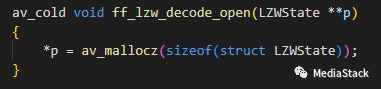 最后,调用ff_lzw_decode_open函数,初始化LZW解压器,并将其赋值给s->lzw。如果初始化失败,则返回AVERROR(ENOMEM)错误码,表示内存分配失败。
