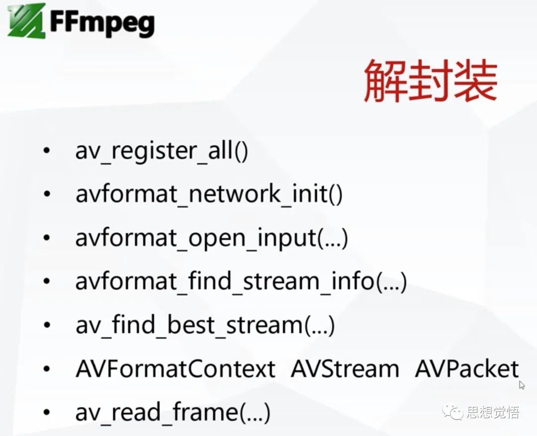 从图中可以看出要想对音视频进行解码,首先需要的是对音视频进行解封装。