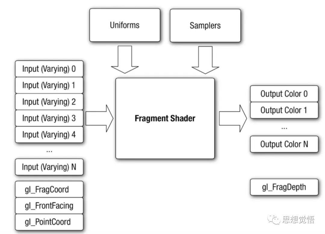 和顶点着色器一样,左边也是输入变量,右边是经过着色器处理后的输出变量。