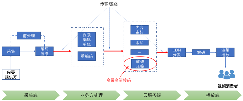 从视频处理角度来看,窄带高清云转码是视频内容触达终端消费者的最后一个处理环节;从客观现实上来说,是视频内容生产消费全链路的“最后一公里”。