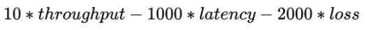 其中,throughput吞吐量表示每秒的数据包,latency 单位是秒,loss 丢包表示发送但是未确认的比率。选择每个因素的范围使得模型平衡我们选择的训练参数的吞吐量和延迟。在第 4 节里,我们讨论其他算法的目标函数(或者缺乏目标函数),说明 Aurora 的吞吐量和延迟的折中。