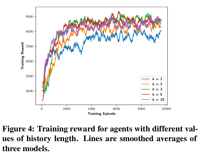 最终结果显示,k=2 和 k=10 训练的模型获得的奖励结果相差不多,但是 k=1 只有一个监督时间的历史数据在我们选择的训练集得到的结果就要差很多。
