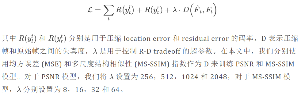 我们使用 Vimeo-90k 数据集作为训练集,我们先对in-loop模块进行初步训练,之后对整个 ALVC 网络进行端到端训练,损失函数为