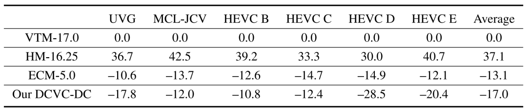 由下表可见,DCVC-DC 的性能优于 ECM。如果使用 ECM 作为 anchor,则平均可节省 6.4% 的比特率。