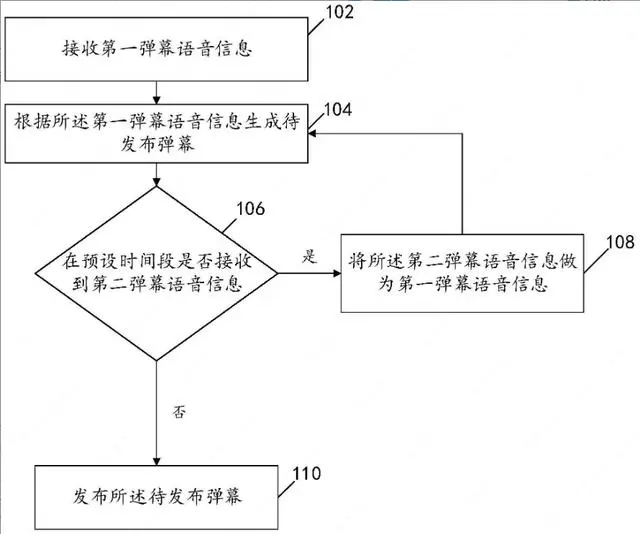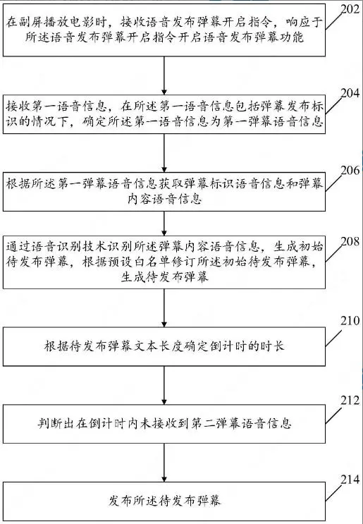 实现了在车载场景的情况下,引导用户尽量避免键盘输入、手动点击按钮等触控操作,并结合预设白名单提高语音输入识别效率,从而为用户提供一种快捷高效的语音发布弹幕方案。