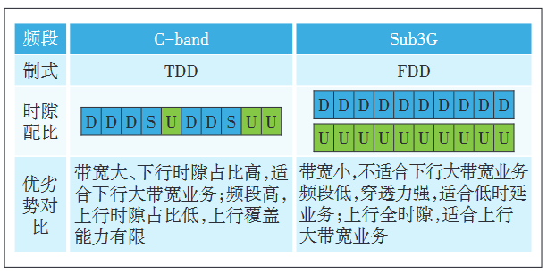 目前 5G 的主流商用频段(如 3.5 GHz)在 3GPP 中被定义为时分双工模式(TDD),是构建 5G 增强移动宽带(enhanced Mobile Broadband,eMBB)业务的黄金频段,同时也是全球多数运营商 5G 首选频段。下行引入Massive MIMO 技术,通过更为精准的波束赋形和波束扫描等技术极大地提升了下行方向的容量和覆盖能力。同时 TDD 模式上下行时隙配比不均 ,导致 C-Band TDD 系统上下行覆盖不平衡。受频段 特性和 TDD 制式影响,3.5 GHz 的 5G 网络上行覆盖能力和上行容量不足,都亟需提升(见图 1)。