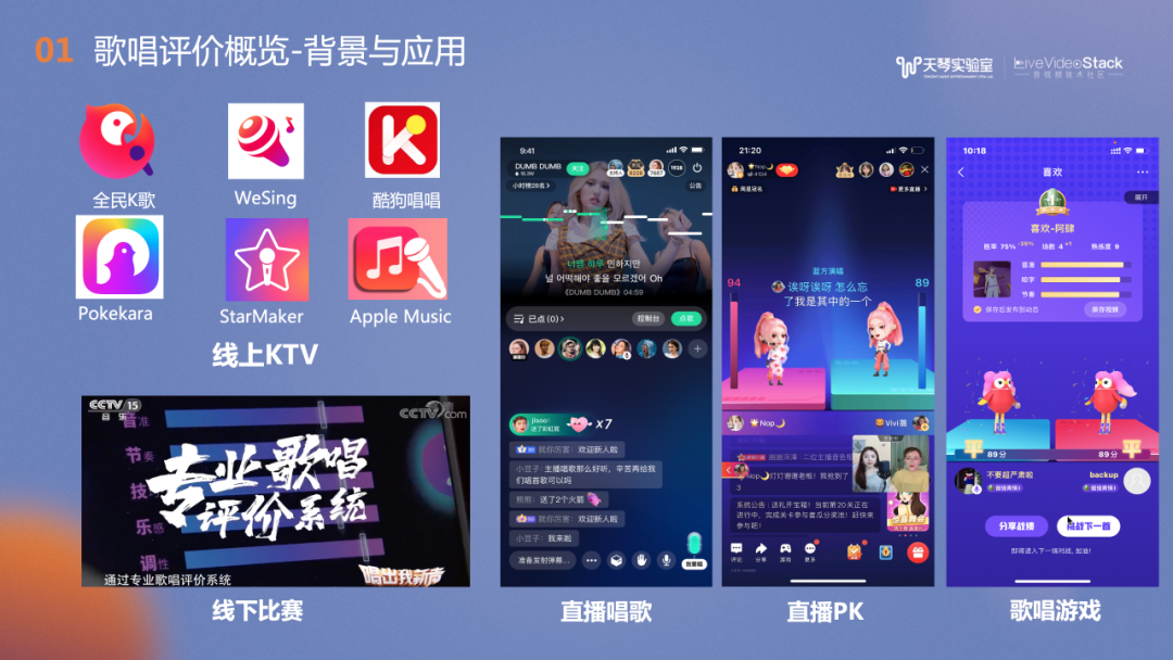 歌唱评价还可应用在优质作品筛选方面,如全民K歌的大赛、高质歌房筛选、运营活动中低质作品的过滤和高质作品的分发。此外,在QQ音乐中,也可以通过品鉴技术检测曲库中的低质作品,或者对入库作品的质量进行把关。总结来说,歌唱评价是一个鉴优去劣,或者说是品鉴的过程。