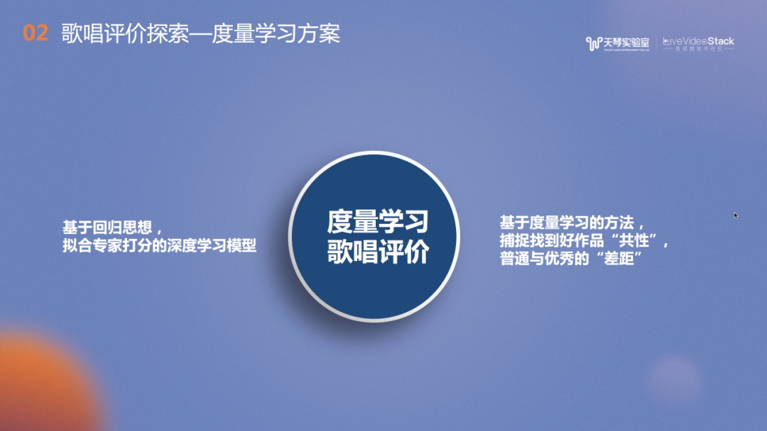 上文主要介绍了通过有参考评价,使用到的方法主要包括特征提取、统计学习以及机器学习。除此之外,我们还尝试了度量学习方案,通过控制训练过程,帮助更好地捕捉“好声音”。