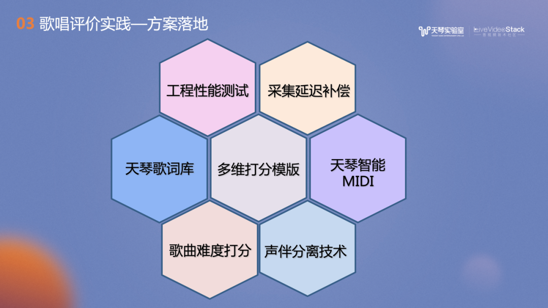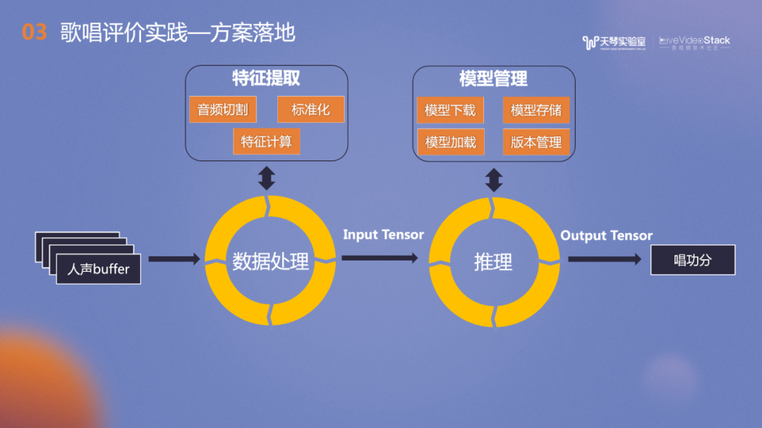 歌唱评价的落地实践中还有许多配套支持的工作,例如模型的管理、存储和加载,工程性能的考虑、设备延迟的补偿、声伴分离技术及歌曲难度打分技术等等。