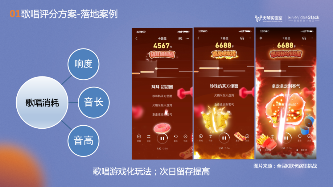 此外,还有一些歌唱的游戏化玩法,比如参考相关文献,将歌声的特征和消耗卡路里映射,实现游戏化的录唱评分。