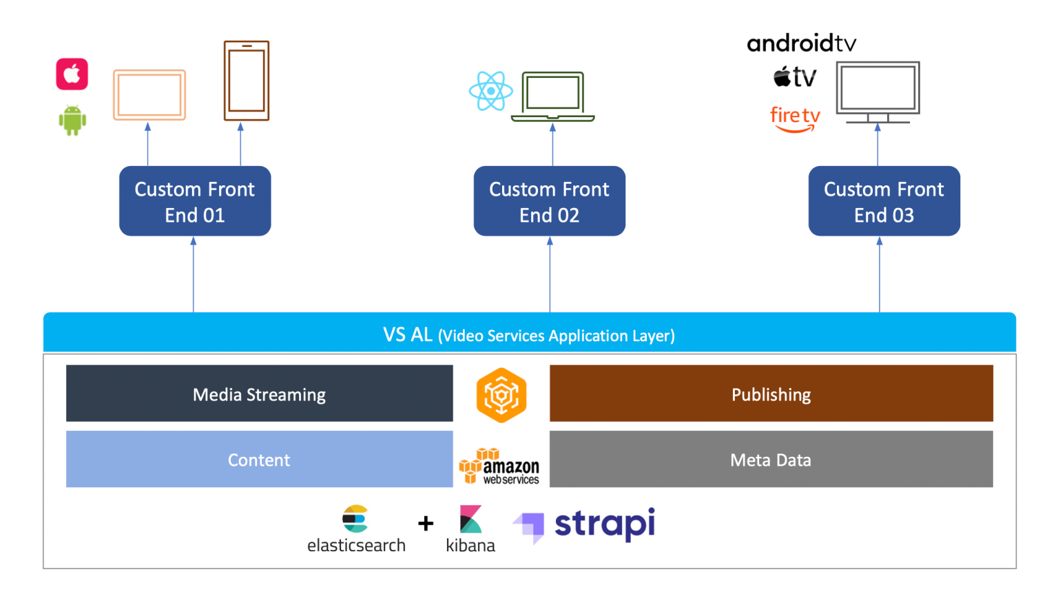 Strapi 为内容创建者提供了一个 API 来添加、修改、删除内容或添加元数据。开发人员可以使用现有播放器构建自定义前端应用程序,例如 React、Angular 或本机应用程序,以在 OTT 平台上显示视频内容。