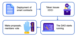 这个主题的核心是对 DAO 框架的理解。DAO是由社区和智能合约管理的去中心化自治组织(如图 1 所示)[16]。 它们使人们能够通过在公共区块链上的软件基础设施中编码的自我执行规则来协调和管理自己 [4]。DAO以社区为中心的性质使其成为检验假设和将研究结果扩展到更实际见解的潜在沃土。 除此之外,他们正在启用一种基于透明度、数据隐私和易于数据共享的新研究方法。