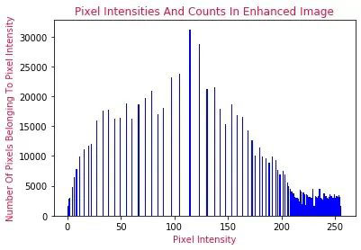 但是一个好的图像将具有来自图像的所有区域的像素。所以你需要将这个直方图拉伸到两端。这通常会提高图像的对比度。