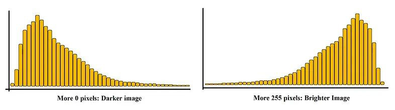 因此,如果我们的直方图向左移动(左偏),则图像会包含更多黑色像素;如果我们的直方图向右移动(右偏),图像会包含更多白色像素。