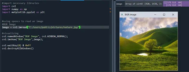 image = cv2.imread("C:/users/public/pictures/nature.jpg")