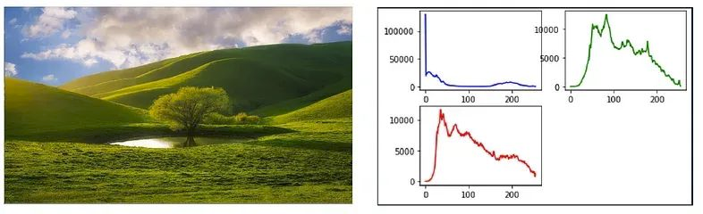在绘制直方图之前,我们可以分离该图像中的颜色通道。