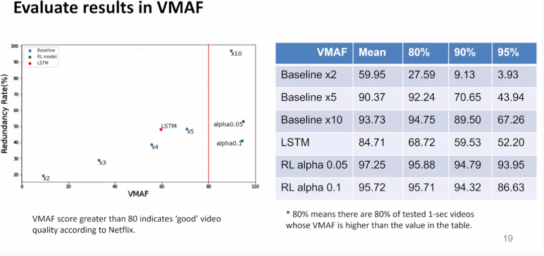 结果表明, RL-AFEC 可以实现在较低冗余率下取得较高的 VMAF值。