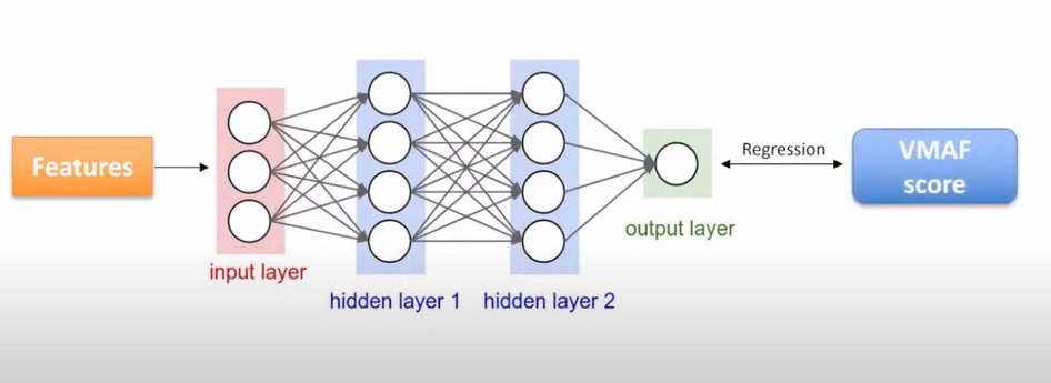 在实际中,我们采用了 VMAF 作为ground truth。训练了一个全连接网络,输入特征,对 VMAF 分值进行回归拟合。