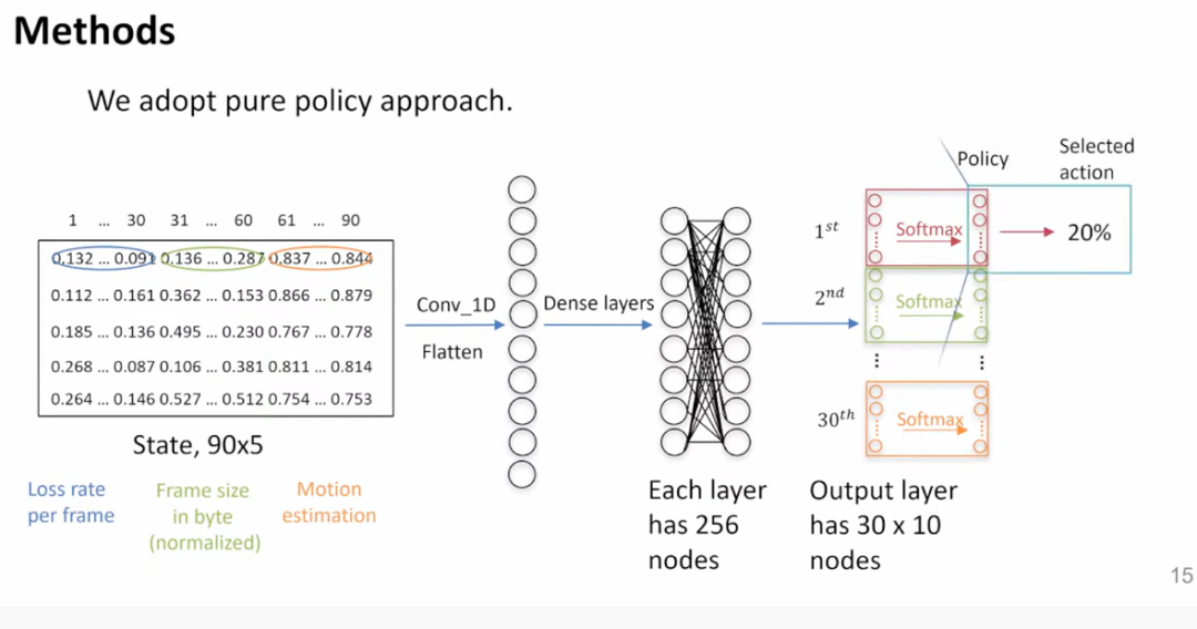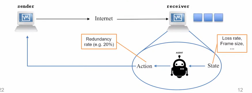 每帧进行 Reed-Solomon 编码,属于相同帧的包作为一个数据块(block)。Action pool 中包含 10%-100% 不同的冗余率。Agent 每帧选择一个冗余率。比如选择了 20% 作为 I 帧的冗余率,该帧包含 10 个包,然后根据指示添加了 20% 的冗余包进行传输。