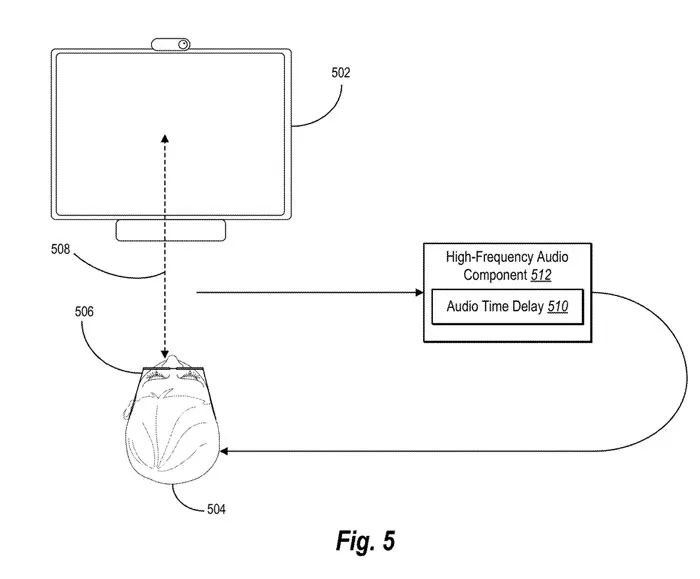 如图5所示,空间音频扩展系统106可以提供高频音频component512,以便通过可穿戴音频设备506与音频时间延迟510一起呈现给用户504。