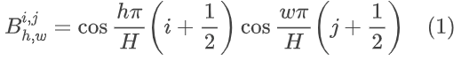 尽管距离DCT在图像/视频压缩算法中首次引入已经过去了很多年,但由于其高效性和易用性,类似DCT的变换仍然是主流变换。一般来说,二维DCT的基函数可以表示为: