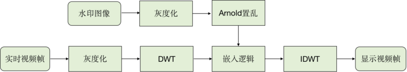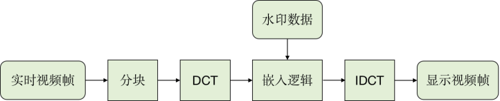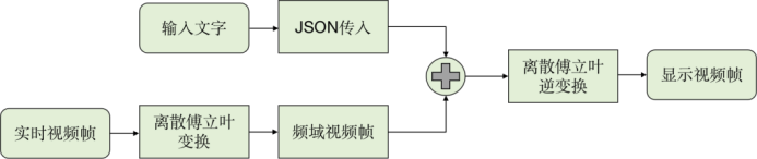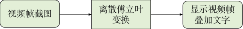 将视频帧在频域上完成信息叠加,通过傅里叶变换,在实部和虚部完成文字图像叠加,再通过逆变换显示视频帧。
