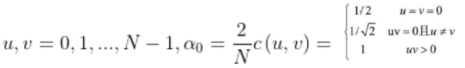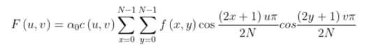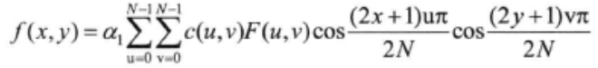 在傅立叶变换过程中,如果被展开的函数是实偶函数,那么其傅立叶变换中只包含余弦项,基于傅立叶变换的这一特点,人们提出了离散余弦变换。DCT变换先将图像函数变换成偶函数形式,再对其进行二维离散傅立叶变换,因此DCT变换可以看成是一种简化的傅立叶变换。其二维离散余弦变换定义如下式: