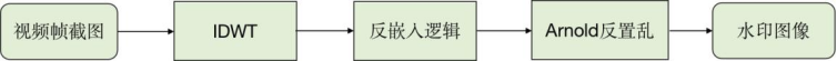 将带有水印的视频帧截图进行二级小波分解,获取低频区域,依据嵌入的逻辑进行反计算提取水印,之后将提取的信息进行Arnold反置乱,从而得到水印图像。