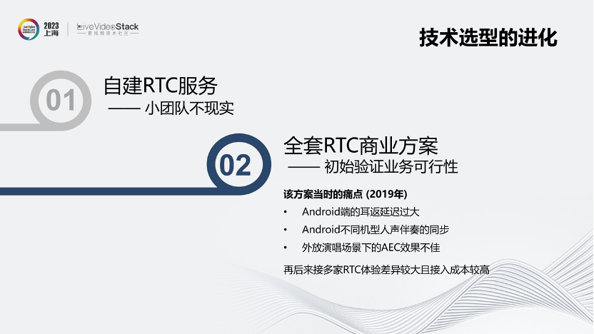 我们一开始是使用全套RTC商业方案跑通业务,验证业务可行性。2019年时各家RTC的重点还都是在教育和会议场景,对K歌场景的支持非常有限。