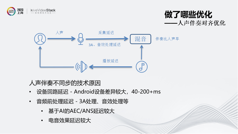 一个是Android端耳返延迟过大,以及人声伴奏不同步的问题,还有就是外放场景下回声消除的效果比较差。