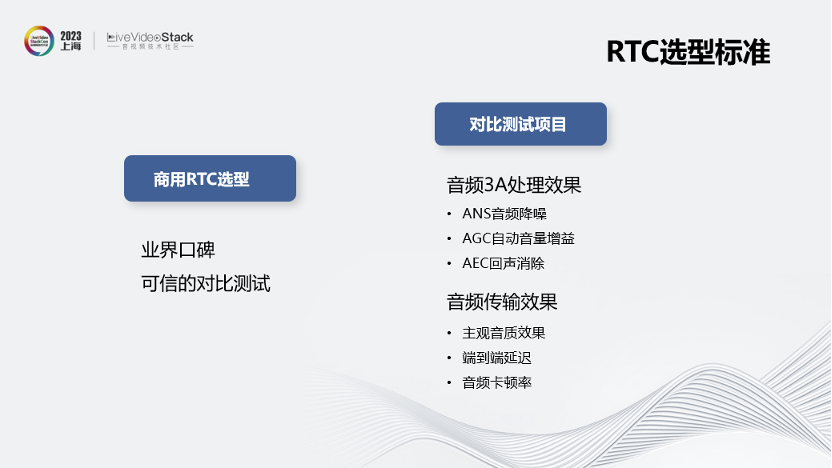 在RTC选型标准上,首先是参考业界口碑,另外就是建立可信的对比测试。